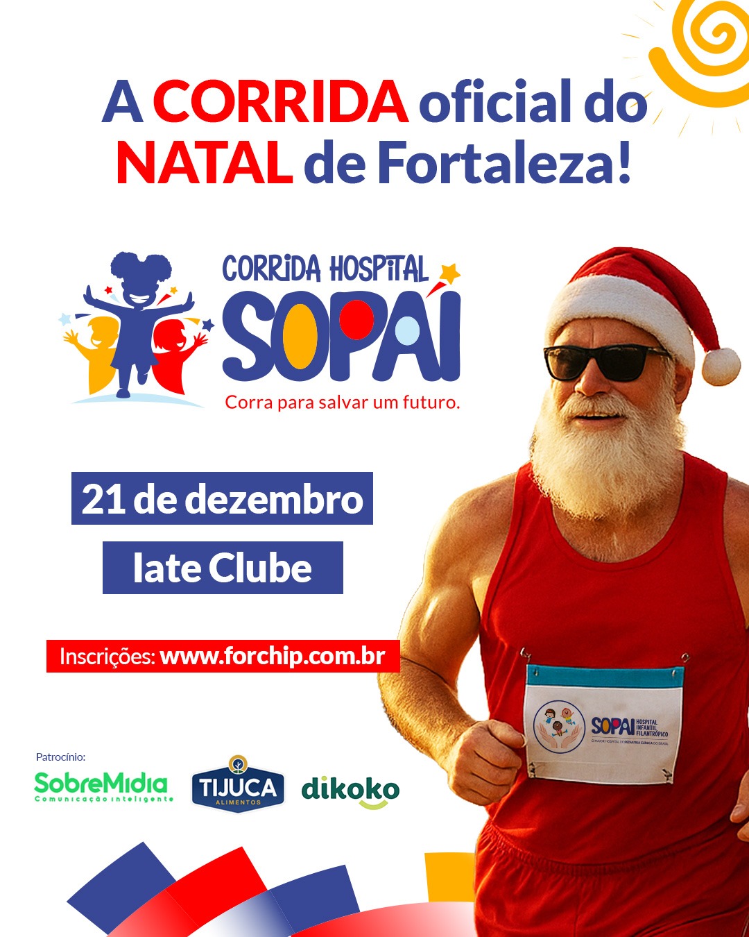 A capital cearense vai ganhar uma nova tradição natalina. No dia 21 de dezembro, acontece a primeira edição da Corrida SOPAI, evento filantrópico em prol do Hospital Infantil Filantrópico SOPAI, instituição referência nacional em pediatria e saúde mental infantojuvenil. A prova acontece com concentração às 5h e largada às 5h30, no Iate Clube de Fortaleza, local também da chegada dos corredores.