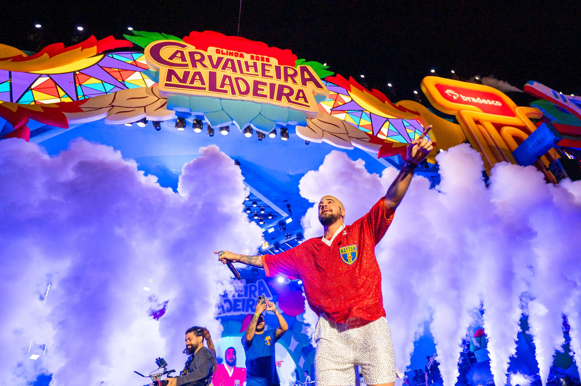 Entre os famosos que circularam pelo evento no primeiro dia estiveram nomes como Vanessa Lopes, Lucas Mamede, Maisa, João Guilherme, Carlinhos Maia, Will Guimarães e André Martinelli, que curtiram de perto a programação deste sábado. Nos palcos, a energia ficou por conta da irreverência de Nattan — que apostou em um novo visual para o Carnaval —, do sertanejo romântico e atemporal da dupla Jorge & Mateus e dos sucessos de Natanzinho Lima, que estreou na grade do festival e levou o público ao coro em diversos momentos da apresentação.