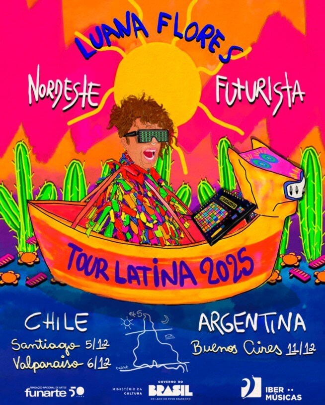 A cantora Luana Flores realizou em dezembro sua primeira turnê internacional com o espetáculo “Nordeste Futurista”, que passou por Santiago e Valparaíso, no Chile, e Buenos Aires, na Argentina. A circulação marcou um novo estágio de sua trajetória fora do Brasil, ampliando o diálogo com cenas locais e reforçando sua projeção no circuito independente latino-americano.
