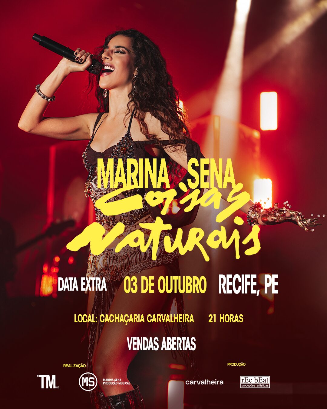 Com ingressos esgotados poucas horas após a abertura das vendas, Marina Sena anuncia data extra em Recife com seu novo espetáculo, baseado no álbum Coisas Naturais. A nova apresentação será realizada no dia 3 de outubro, véspera da data já anunciada, 4 de outubro, que está com entradas esgotadas, ambas as apresentações serão na Cachaçaria Carvalheira. Os ingressos para a data extra começam a ser vendidos nesta quarta-feira, 9 de julho.